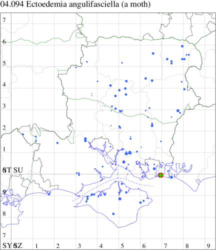 Nationally scarce (Nb) and found along the coast of south-east England from Dorset to Suffolk. In Hampshire and on the Isle of Wight found along much of the coastline, and rare further inland: it was found on the Moors NR, Bishop's Waltham in 2003, and more surprisingly at Magdalen Hill Down NNR on the VC11/12 boundary in 2023. Wingspan male 4.1-5.0 mm, female 4.1-5.6 mm. When bred from mines the adult can be separated from all other Rosaceae feeding Ectoedemia by costal spot (or costal part of fascia) placed distinctly before middle of forewing (MBGBI Vol 1). Larva mines leaves of Bramble, over-wintering as a pupa.