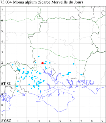 VC12: Chilbolton, one, to actinic, 09 Aug (SLE det. GCE); Harestock, one, 20 Jun; one, to actinic, 21 Jun (GRog); Overton, one, 25 Jun; one, 26 Jun (MSi); Ecchinswell, one, 08 Aug (MJN); Basingstoke, one, 24 Jun; two, 26 Jun (MJW); Pamber Forest, one, 30 May (GJD); Alton, one, to actinic, 15 Jun (BCA); Whitehill, one, to actinic, 29 May (ASto); Castle Bottom NNR, present, 25 Jun (JHH, AMD); Hammer Vale, Woolmer, one, 30 May (ASw); Fleet, one, 24 Jun (MHals); Velmead Wood, Fleet, larva, one, field observation, 18 Jul (JChe); Yateley, one, 31 Jul (JHH)
