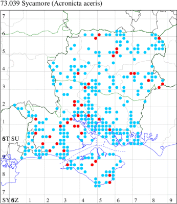 Common in woodland, fens, parks and gardens throughout the British Isles. Widespread and common in Hampshire and on the Isle of Wight. Wingspan 38-45 mm. Could be confused with Sycamore A. aceris. Larva feeds on Black and White Poplar, and Aspen, over-wintering as a pupa.