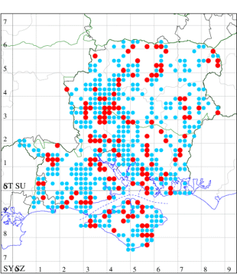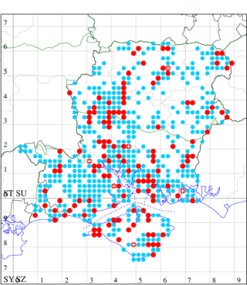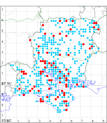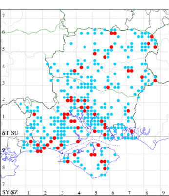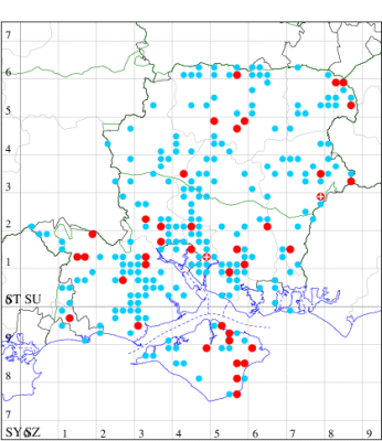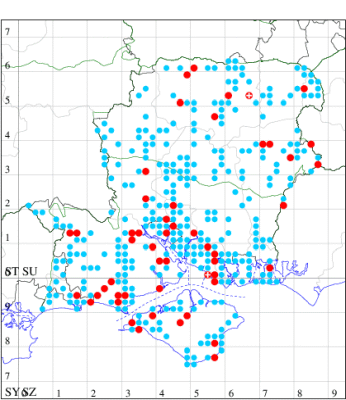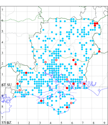 For the maps, all records prior to 2022 are shown by a blue dot (the larger the dot, the more recent), with the current year's records shown in red. As previous records are superimposed on any report for 2022, new sites have greater emphasis (i.e. will show as 'more red').