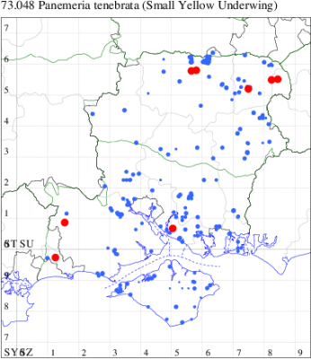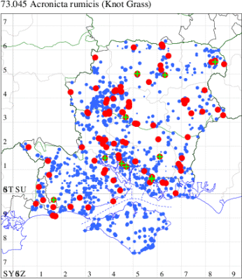 VC11: Earliest: Hengistbury Head, 04 May, 1 (MJef) Latest: Bitterne, Southampton, 08 Oct, 2 (NBur) Max count: Fareham, 17 Aug, 6 (KJW)