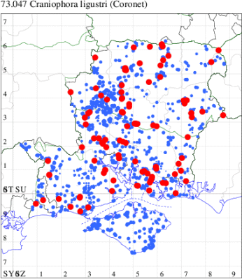 VC12: Overton, one, 09 Jun (ACr); Lord's Wood, Pamber Forest, three, 10 Jun (MBot); Noar Hill HIWWT NR, Selborne, two, 09 Jun (AMD, FHay det. AMD); Hammer Vale, Woolmer, one, 09 Jun (ASwa); Fleet Pond, two, 10 Jun (MHals)