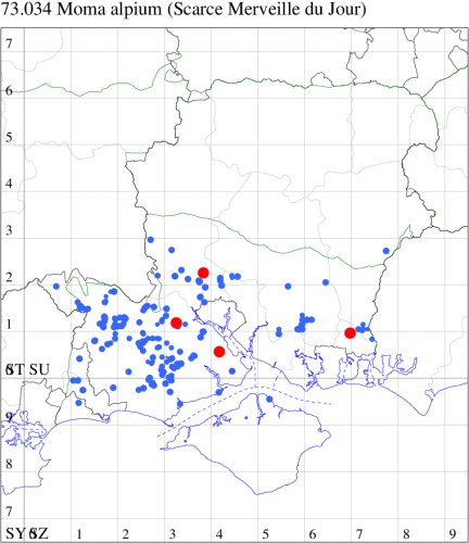 For species seen in 2024 that had less than or equal to 100 records, full details are included; for more common species, the earliest, latest and highest count by vice-county are shown. The narrative for each species is taken from the main Hantsmoths website, and it is possible that some information on abundance and occurrence can get out of date, as it is impossible to keep up with all changes; however it should give a good introduction to each species. The tables in each species account summarise the previous status, and that for the current year.