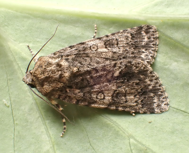 Local in parks, gardens, woodland and scrub throughout southern England. In Hampshire and on the Isle of Wight widespread and fairly common, particularly in suburban area. Wingspan 41-49 mm. The main confusion species are Poplar Grey A. megacephala and Sweet Gale Moth A. euphorbiae, but has characteristic S-shaped subterminal band of pale grey blocks. Larva feeds on Horse-chestnut, Sycamore and Field Maple, over-wintering as a pupa.