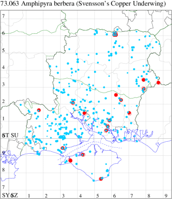 VC12: Earliest: Barton Stacey, 25 Jun, 1 (GCE) Latest: Harestock, 21 Sep, 1 (GRog) Max count: Crawley, 12 Aug, 6 (GCE)