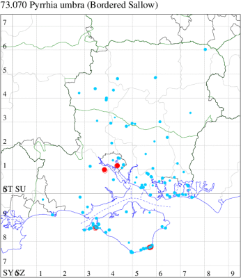 VC11: Kings Somborne, one, to actinic, 16 Nov (GCE); Fareham, one, 12 Aug (KJW); Northney, Hayling Island, present, 06 Jul (JWP); Milford on Sea, one, 17 Sep (MMcM); Southsea, one, 22 Oct (JRL)