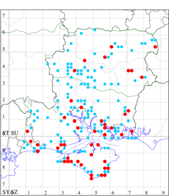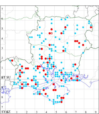For the maps, all records prior to 2022 are shown by a blue dot (the larger the dot, the more recent), with the current year's records shown in red. As previous records are superimposed on any report for 2022, new sites have greater emphasis (i.e. will show as 'more red').