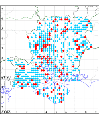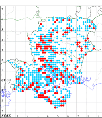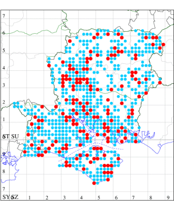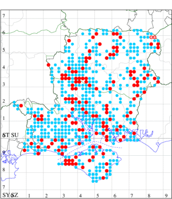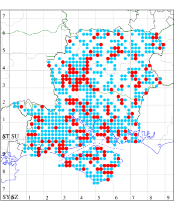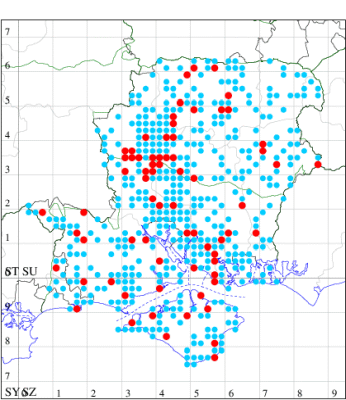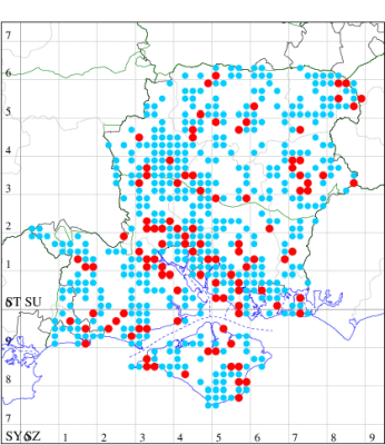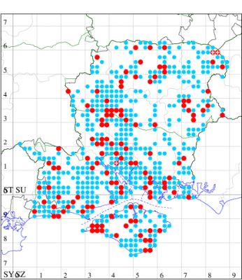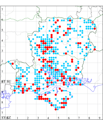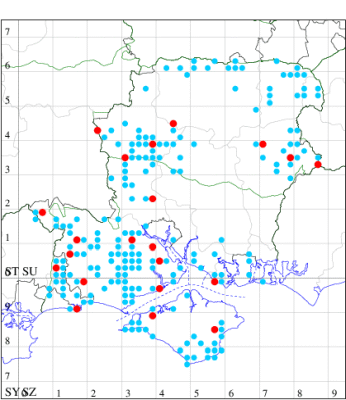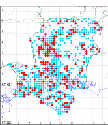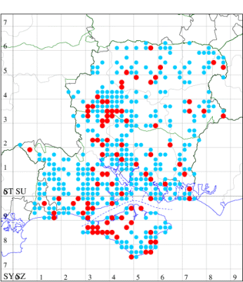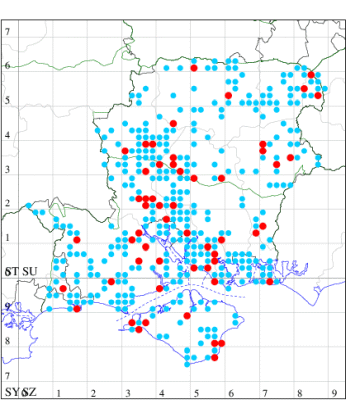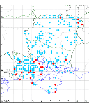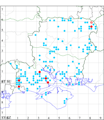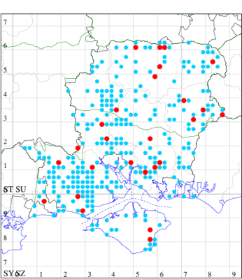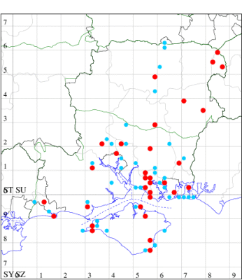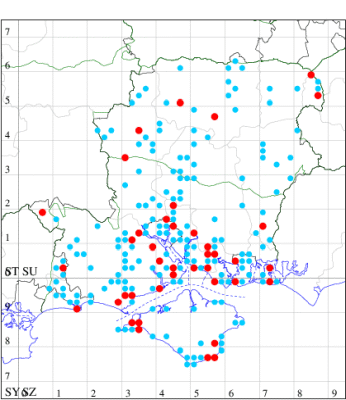 For the maps, all records prior to 2022 are shown by a blue dot (the larger the dot, the more recent), with the current year's records shown in red. As previous records are superimposed on any report for 2022, new sites have greater emphasis (i.e. will show as 'more red').