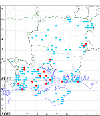 VC11: Ogden's Purlieu, NF, one, 18 Jul; Hasley, NF, present, 19 Jul (AMD); Pig Bush, NF, one, 09 Aug (NRJ); Marchwood, one, 04 Aug (CTha); Woodlands, NF, one, 06 Aug (CJon); Dibden Purlieu, two, 30 Jul; one, 31 Jul; one, 08 Aug; one, 20 Sep; one, 21 Sep; one, 22 Sep (RAC); Blackfield, one, 06 Aug (SJJ); Allbrook, one, 26 Jul (SIng); Hurn, one, 15 Aug; Hengistbury Head, four, 01 Aug; eight, 11 Jul; three, 18 Jul; seven, 19 Jul; 15, 20 Jul; five, 26 Jul; two, 27 Jul (MJef); two, 01 Aug; two, 08 Aug; two, 14 Aug (RPH det. MJef); Sway, NF, present, 06 Aug (DMui); Pennington, one, 27 Jul (RFC); Needs Ore NNR, two, 05 Aug; 30, 05 Aug; 30, 11 Aug; one, 14 Jul; five, 21 Jul; 15, 23 Jul; 10, 25 Jul; 13, 28 Jul; six, 06 Aug; 22, 13 Aug; one, 19 Aug; four, 17 Jul; one, 29 Jul (CNB); Browndown Coastal Ranges, 10, 12 Aug (KCok, RJD, MLO, ADT, DWal det. KJW); Hayling Island, one, 19 Jul (STho);