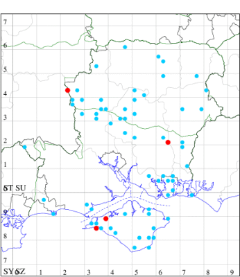 VC11: Brockwood, three, 06 Oct (SDut); Blashford Lakes HIWWT NR, one, 24 Sep (NTO); Furzehill, NF, one, 03 Oct (SLoa); Marchwood, one, 04 Sep (CTha); Woodlands, NF, present, 01 Sep (RBW); Romsey, one, 31 Aug; one, 04 Sep; one, 24 Sep; one, 28 Sep (NRJ); Dibden Purlieu, one, 29 Aug; one, 30 Aug; one, 31 Aug; one, 01 Sep; one, 17 Sep; one, 19 Sep; one, 20 Sep (RAC); Hengistbury Head, one, 12 Sep (MoTay); four, 16 Sep (BKin); two, 10 Oct (MJef); one, 12 Oct (RPH); one, 13 Oct (PWet); two, 19 Oct (MoTay det. RPH); Thorney Hill, Bransgore, one, 27 Aug (JFen); Needs Ore NNR, two, 02 Sep; one, 09 Sep (CNB); Browndown Coastal Ranges, one, 28 Oct (RJD, MLO, DWal, KJW); Brockwood, three, 06 Oct (SDut); Blashford Lakes HIWWT NR, one, 24 Sep (NTO); Furzehill, NF, one, 03 Oct (SLoa); Marchwood, one, 04 Sep (CTha); Woodlands, NF, present, 01 Sep (RBW); Romsey, one, 31 Aug; one, 04 Sep; one, 24 Sep; one, 28 Sep (NRJ); Dibden Purlieu, one, 29 Aug; one, 30 Aug; one, 31 Aug; one, 01 Sep; one, 17 Sep; one, 19 Sep; one, 20 Sep (RAC); Hengistbury Head, one, 12 Sep (MoTay); four, 16 Sep (BKin); two, 10 Oct (MJef); one, 12 Oct (RPH); one, 13 Oct (PWet); two, 19 Oct (MoTay det. RPH); Thorney Hill, Bransgore, one, 27 Aug (JFen); Needs Ore NNR, two, 02 Sep; one, 09 Sep (CNB); Browndown Coastal Ranges, one, 28 Oct (RJD, MLO, DWal, KJW);