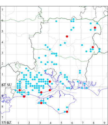 VC10: West High Down quarries, two, 12 Jul (IOu); Totland, two, 24 Jul; one, 25 Jul; one, 27 Jul; one, 30 Jul (RTer); Freshwater Bay, one, 09 Jun; five, 10 Jun; five, 10 Aug (SDav); one, 11 Sep; one, 14 Sep (PBar); Bonchurch, one, 11 Sep; one, 19 Sep; one, 21 Sep (JHa)
