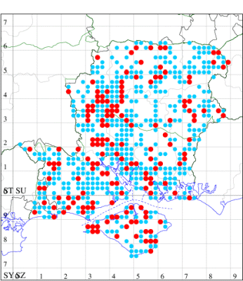 For the maps, all records prior to 2022 are shown by a blue dot (the larger the dot, the more recent), with the current year's records shown in red. As previous records are superimposed on any report for 2022, new sites have greater emphasis (i.e. will show as 'more red').