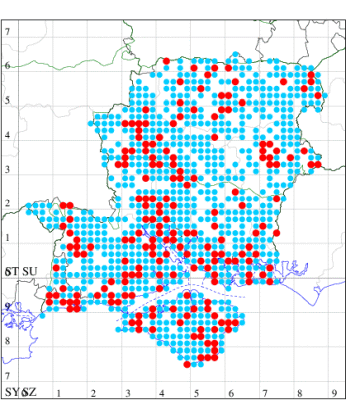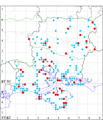 For the maps, all records prior to 2022 are shown by a blue dot (the larger the dot, the more recent), with the current year's records shown in red. As previous records are superimposed on any report for 2022, new sites have greater emphasis (i.e. will show as 'more red').
