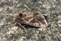 Common in a wide range of habitats, including river-banks, hedgerows and gardens throughout the British Isles, but rare in Scotland; far less numerous and less widely distributed in Hampshire and the Isle of Wight than Spectacle A. tripartita. Wingspan 34-40 mm. Similar to A. tripartita, but ground-colour is brownish black, base of forewing is dull straw or reddish brown and cross-lines are edged with reddish brown (MBGBI Vol 10). Larva feeds on Stinging Nettle and Hop, over-wintering as a pupa.