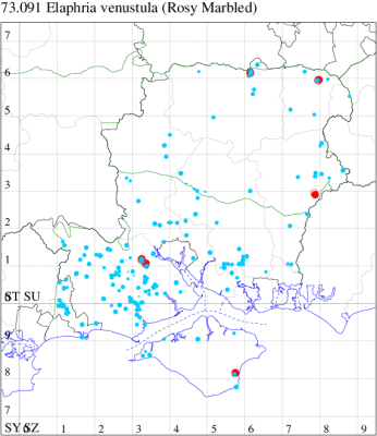 VC11: Fareham, one, 25 Jun; one, 26 Jun (KJW); Portsmouth, one, 15 Jun (IRT); Lovedean, one, 12 Jun; one, 13 Jun (ARJ); Horndean, one, field observation, 24 Apr (JAN)