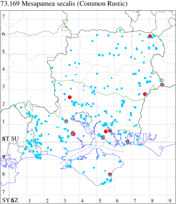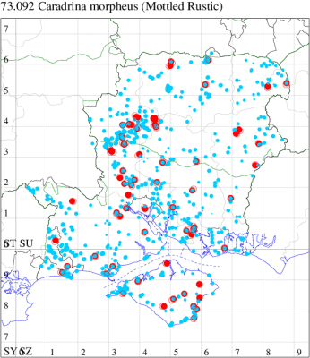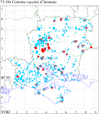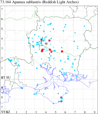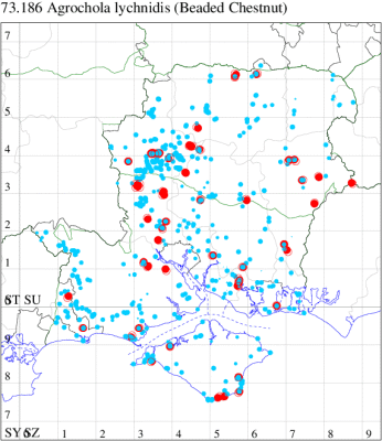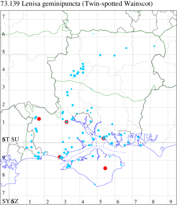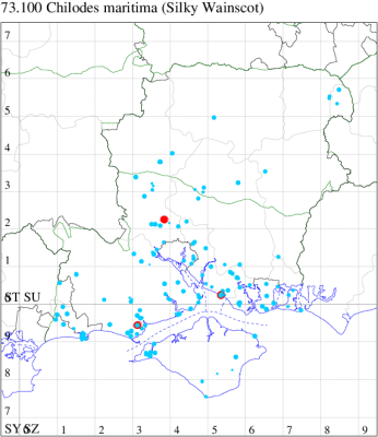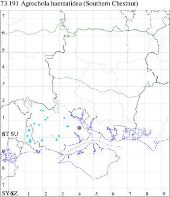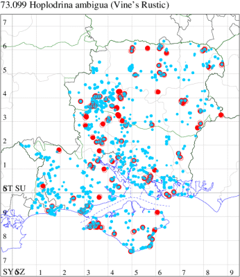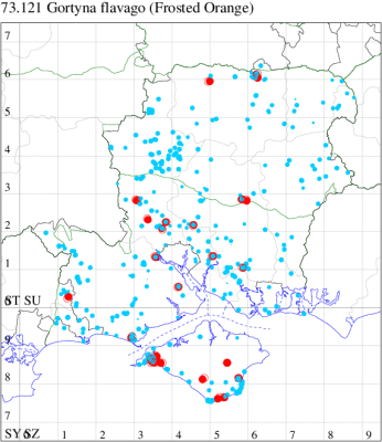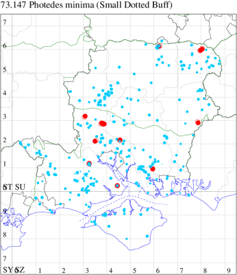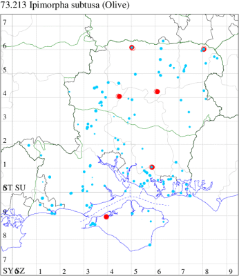 VC10: Earliest: Parkhurst Forest, 08 Sep, 1 (IM) Latest: Shanklin, 22 Oct, 1 (IOu) Max count: Walter's Copse, Newtown, 22 Sep, 4 (PBa)