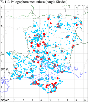 VC11: Southampton, one, to UV, 16 Sep (JVet); Sholing, Southampton, one, first since 2006, 19 Jun (ARC); Fareham, one, 14 Sep (ADT); one, 16 Sep (IMcP); one, to actinic, 08 Sep (MLO); three, 28 Sep (KJW); Portsmouth, one, 22 Sep; one, 28 Sep (IRT); Northney, Hayling Island, present, 28 Sep; present, 20 Oct (JWP); Burton, nr Christchurch, one, 23 Oct (JSw); Pennington, one, 19 Sep; one, 28 Sep (RFC);