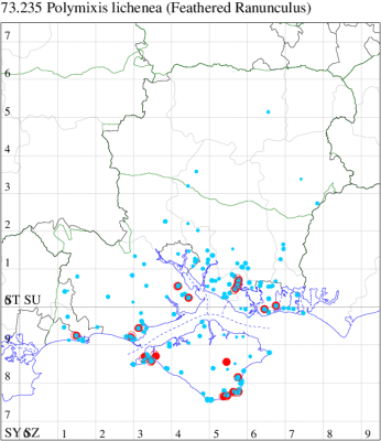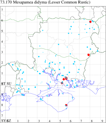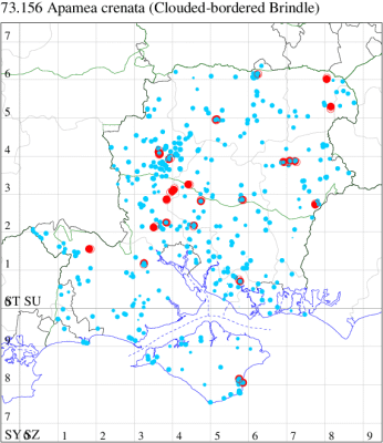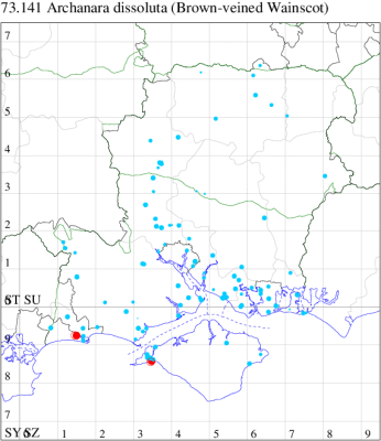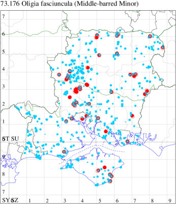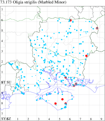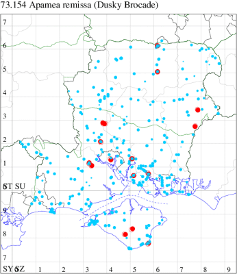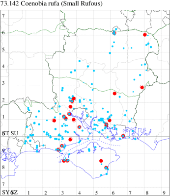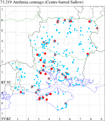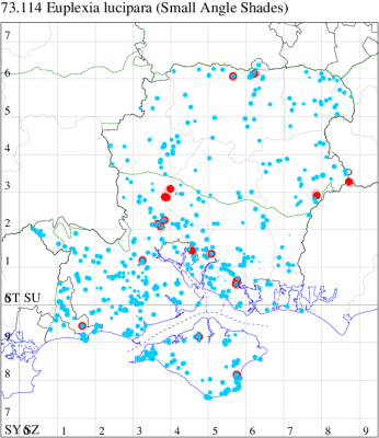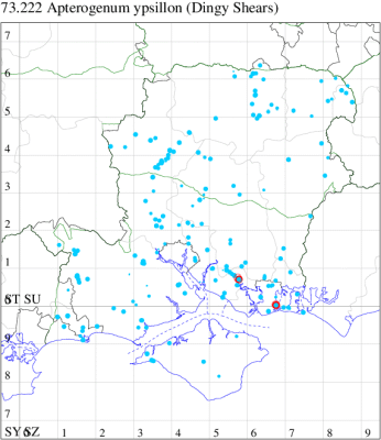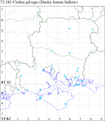 VC10: Earliest: Freshwater Cliffs, 11 May, 1 (SDa) Latest: Shanklin, 18 Oct, 1 (IOu) Max count: Shanklin, 14 Aug, 68 (IOu)