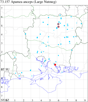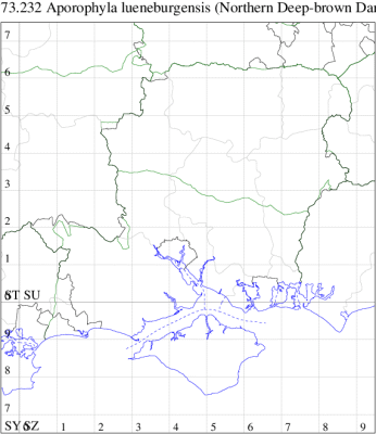 VC12: Crawley, one, to actinic, 12 Aug (GCE); Beech, one, 14 Jul (NDP); Liss, two, 07 Aug (LBe); Liss Forest, one, field observation, 05 Jul (RJM); Castle Bottom NNR, present, 25 Jun (JHH, AMD); Fleet, one, 15 Jul (MHals)