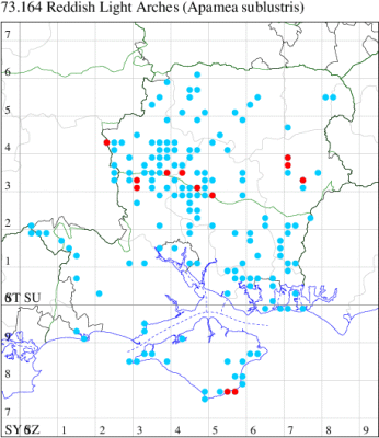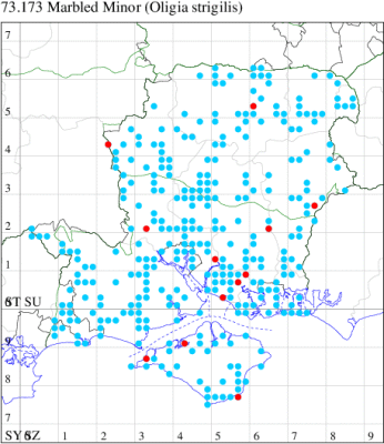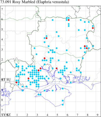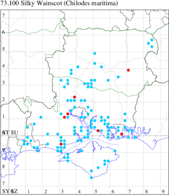 VC10: Earliest: Bonchurch, 13 May, 1 (JHa) Latest: Bonchurch, 13 Oct, 1 (JHa) Max count: Freshwater, 09 Sep, 6 (DCoo)