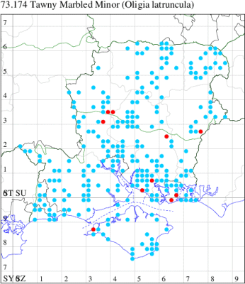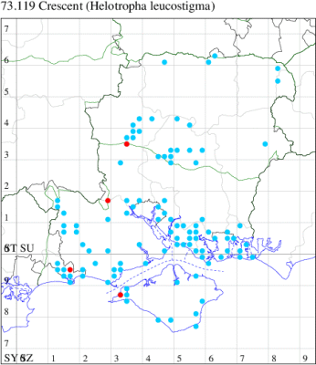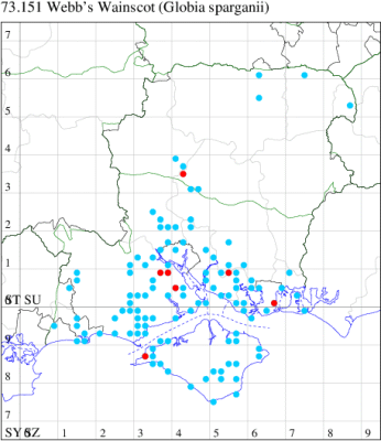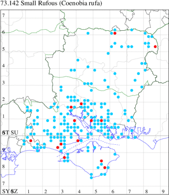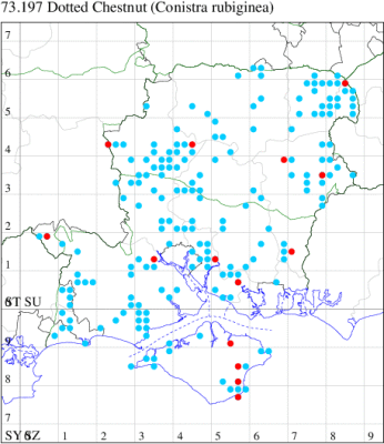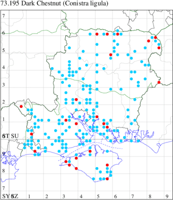 VC11: Earliest: Stubbington, 05 Sep, 1 (WMay) Latest: Botley, 14 Nov, 1 (SLB) Max count: Browndown Coastal Ranges, 08 Oct, 13 (MLO, ADT, DWal, KJW)