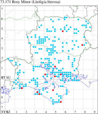 VC10: Earliest: Briddlesford, 09 Jun, 1 (JRB) Latest: Newport, 01 Sep, 1 (DPl) Max count: Totland, 22 Jul, 57 (RTer)