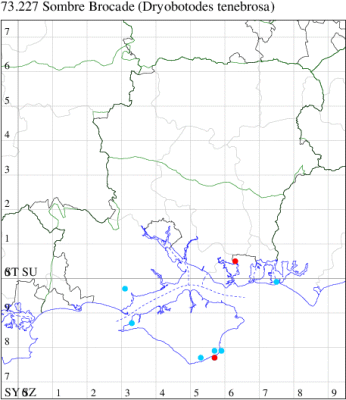 Nationally scarce (Nb) on shingle beaches, sand-dunes and sea cliffs, along the coasts of southern and south-eastern England from Cornwall to Suffolk and, locally, on the southern slopes of the South Downs. On the Isle of Wight, common on the Freshwater cliffs. In Hampshire there have been two records, at Southsea in September 1988, and Hengistbury Head (in the Dorset section of vice-county 11) in October 1996. Wingspan 36-42 mm. The dark form ingenua could be confused with Deep-brown Dart A. lutulenta, which flies at the same time, sometimes on the same ground, but in A. lutulenta the forewing is more ample, with pointed apex; the median fascia is darker than the adjacent areas and the fringe is not chequered (MBGBI Vol 10). Larva feeds on various herbaceous plants, including Sea Campion, Common Sorrel, Bramble and Wood Sage.