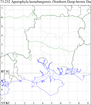 Formerly one of a species pair with populations in most of Britain referred to A. lutulenta, known as Deep-brown Dart, with northern populations split as Northern Deep-brown Dart A. lueneburgensis. DNA evidence published in 2024 indicates that in fact the species that occurs throughout Britain is A. lueneburgensis, which is now renamed Deep-brown Dart. True lutulenta is a species of southern and eastern Europe.