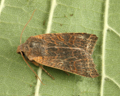 Increasingly common immigrant from southern Europe, appearing in southern England for the first time at New Romney, Kent, on 3 October 2002. Can now be found along the south coast, mostly in September and October, but occasionally as early as May. In our area first recorded in 2003, and 2006 saw a peak of 140 individuals in the southern two vice-counties: a further jump in numbers in 2018 has seen a subsequent exponential increase in records and it is increasingly frequent in the north of Hampshire. Wingspan 28-34 mm. On the continent, the larva feeds on various herbaceous plants.