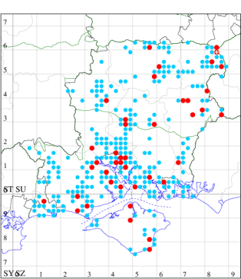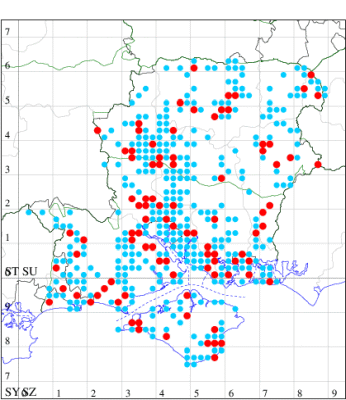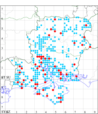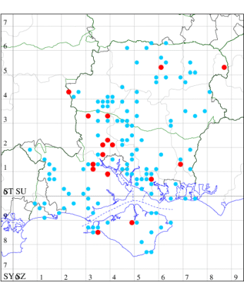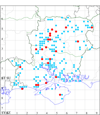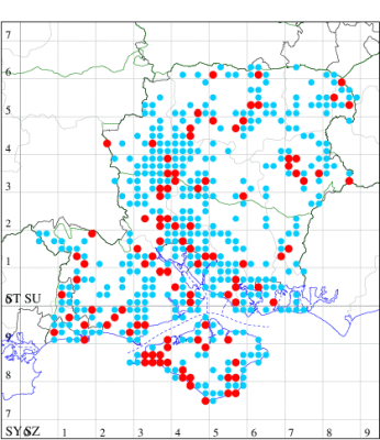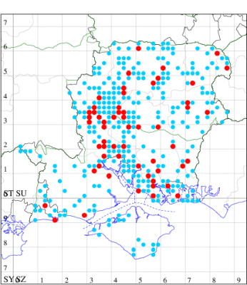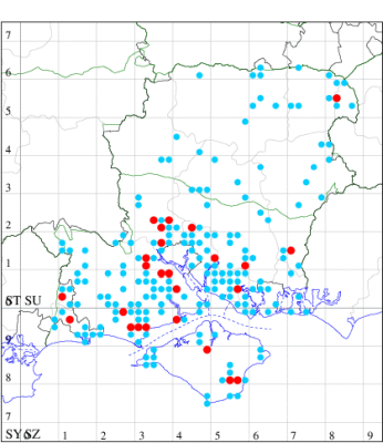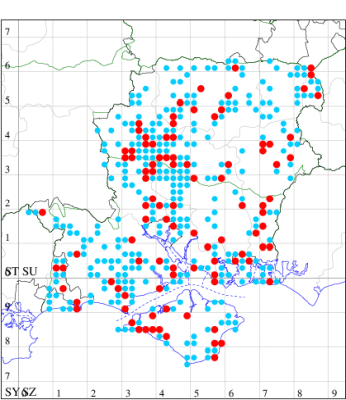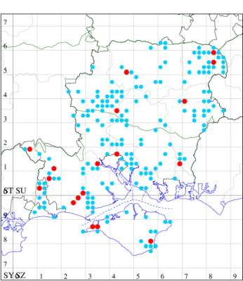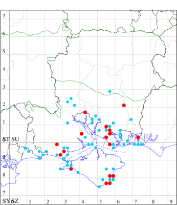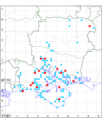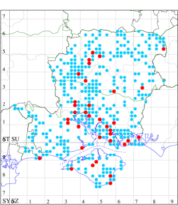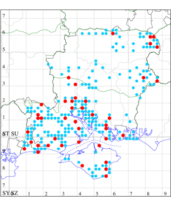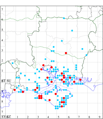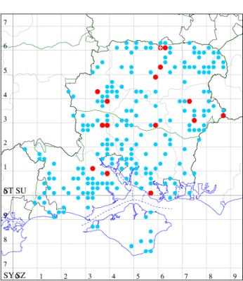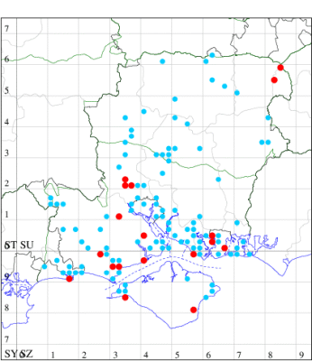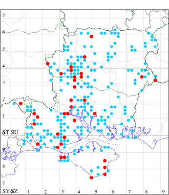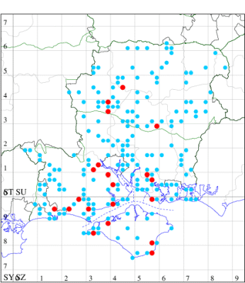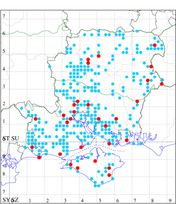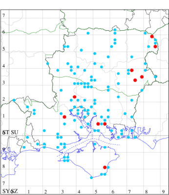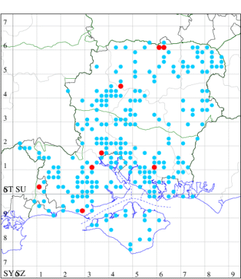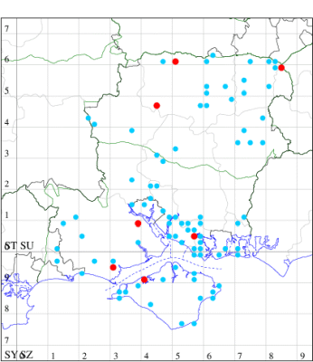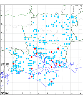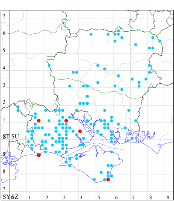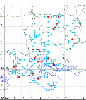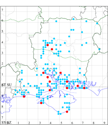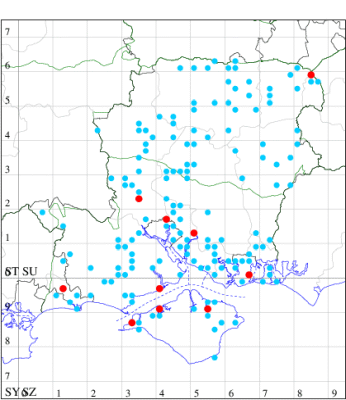 For the maps, all records prior to 2022 are shown by a blue dot (the larger the dot, the more recent), with the current year's records shown in red. As previous records are superimposed on any report for 2022, new sites have greater emphasis (i.e. will show as 'more red').