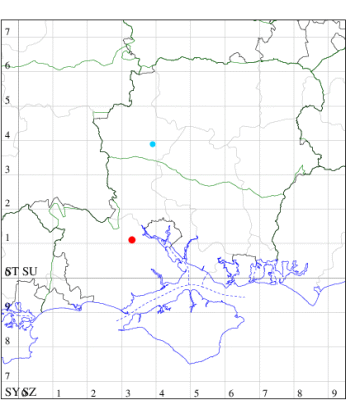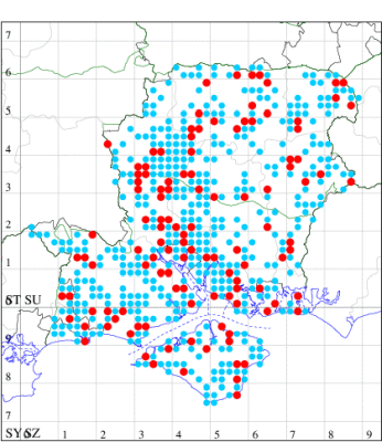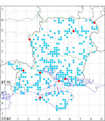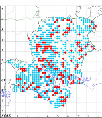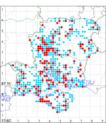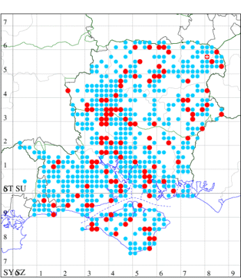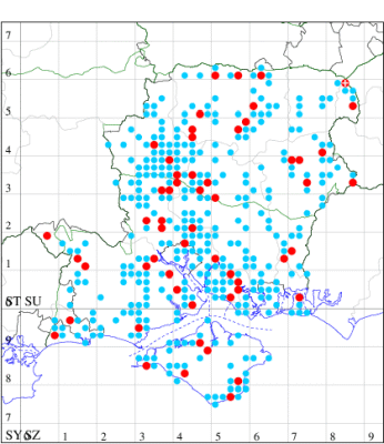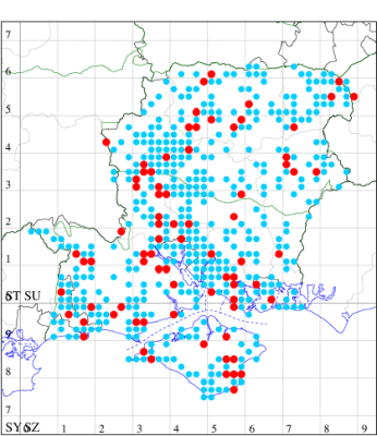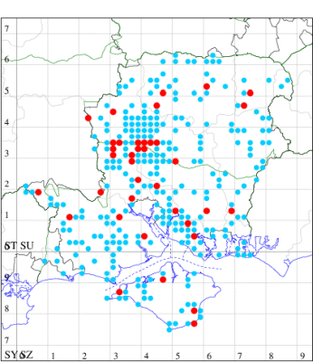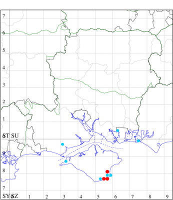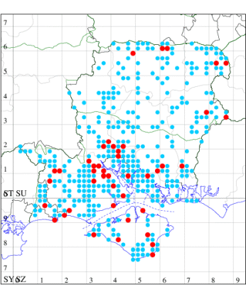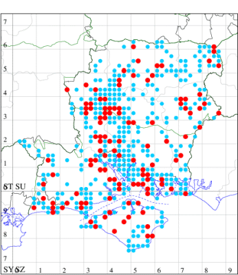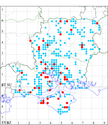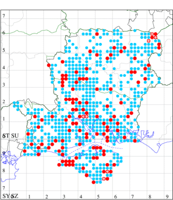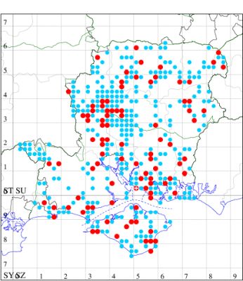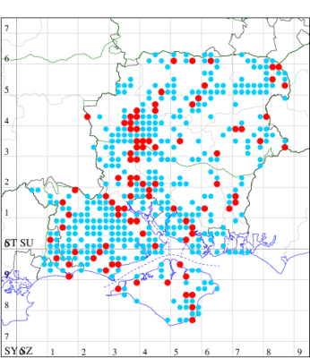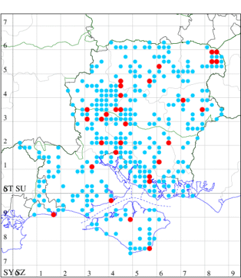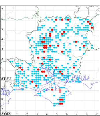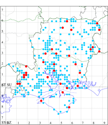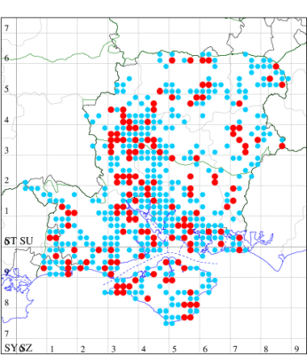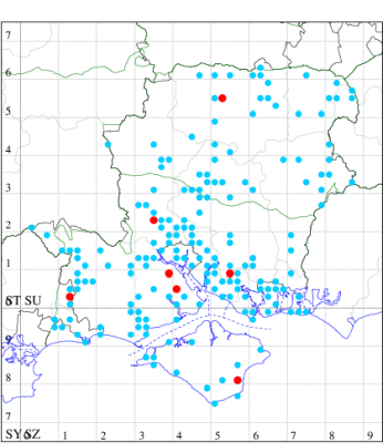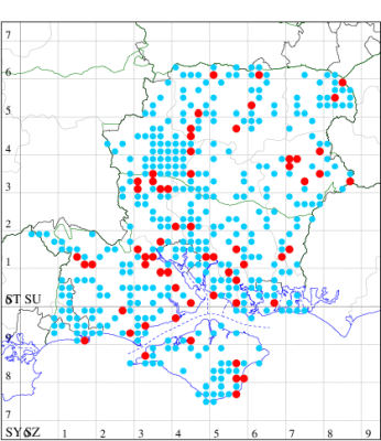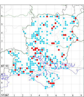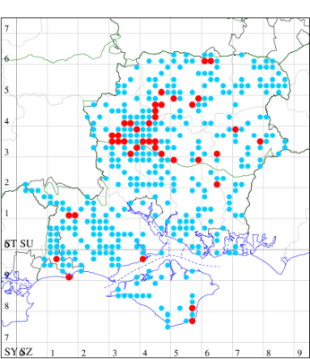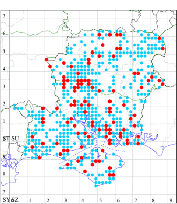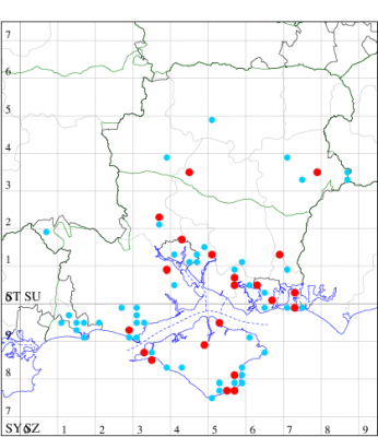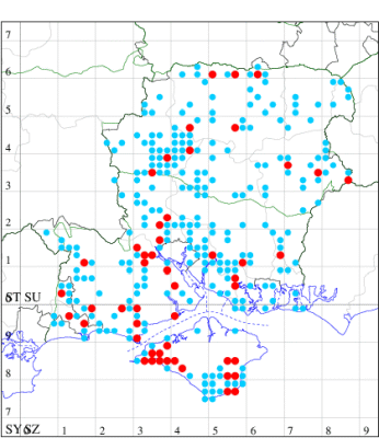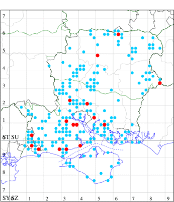 For the maps, all records prior to 2022 are shown by a blue dot (the larger the dot, the more recent), with the current year's records shown in red. As previous records are superimposed on any report for 2022, new sites have greater emphasis (i.e. will show as 'more red').