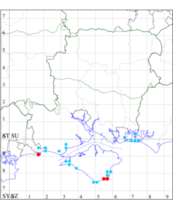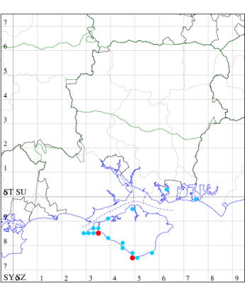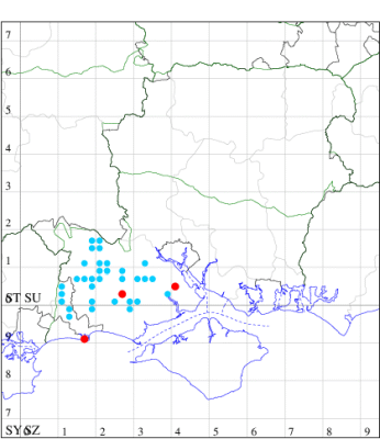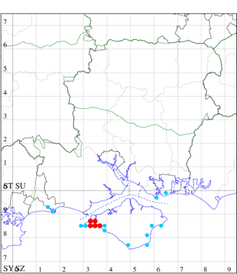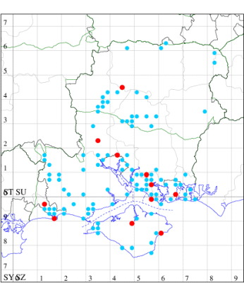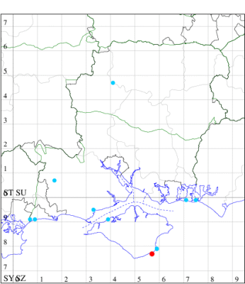VC10: West High Down quarries, one, field observation, trapped 12 September, JH, 14 Sep (IOu); Cranmore, present, 28 Feb (CHic); Bonchurch, one, 11 Sep (JHa); Shanklin, one, 29 Oct (IOu);