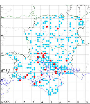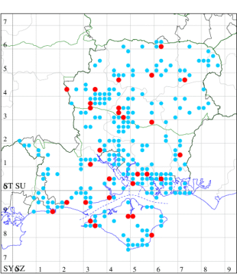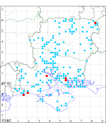 VC11: The Glen, Frogham, present, 04 Jun (DBra); Linwood, NF, one, 03 Jun; one, 07 Jun; one, 08 Jun (DMB); Woodlands, NF, present, 17 Jun (RBW); Totton, one, 24 Jun (CNB); one, 21 Jun (LHan); Lee, one, 19 Jun (CTha); Romsey, one, 17 Jun (MJB); Winter Down Copse, Little Somborne, one, 17 Jun (GCE); Dibden Purlieu, one, 18 Jun (RAC); Vale Park, Chandler's Ford, one, 17 Jun (KArb); Wickham, one, 26 May; two, 09 Jun; one, 10 Jun; one, 11 Jun; one, 14 Jun; two, 16 Jun; two, 22 Jun; one, 23 Jun (JRDS); Hurn, one, 04 Jun (MJef); Burton, nr Christchurch, one, 23 Aug (JStw);