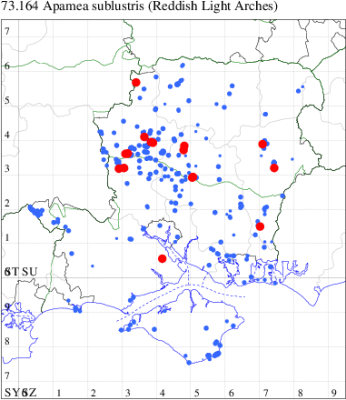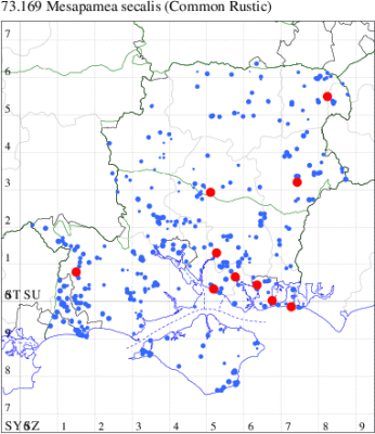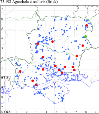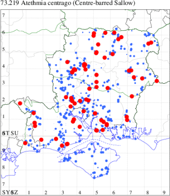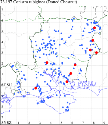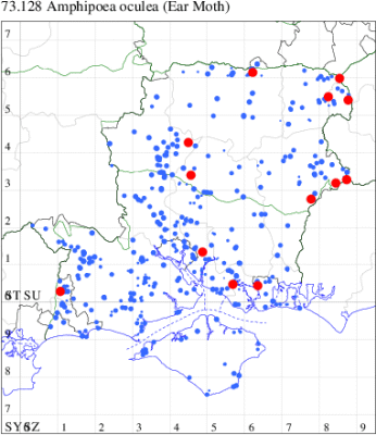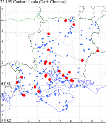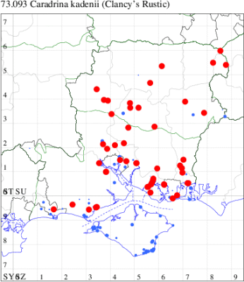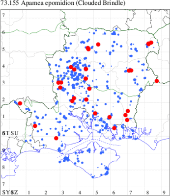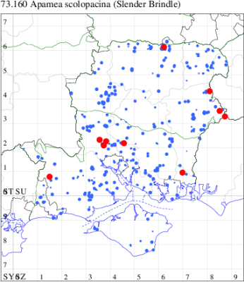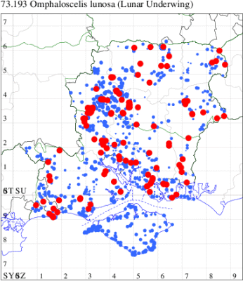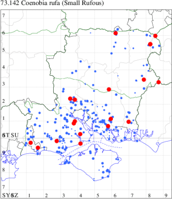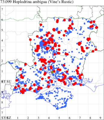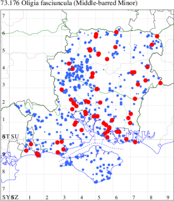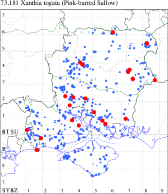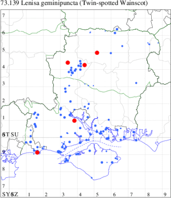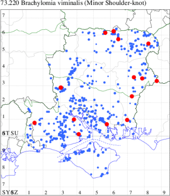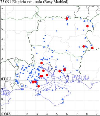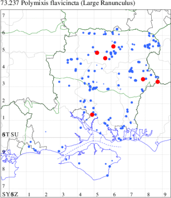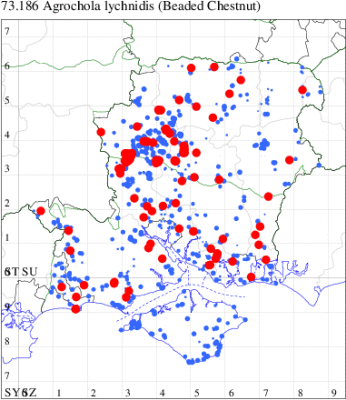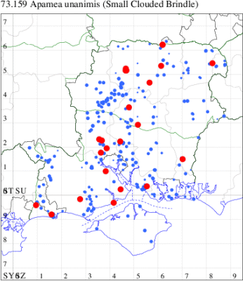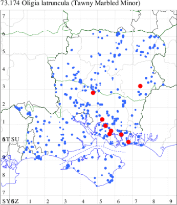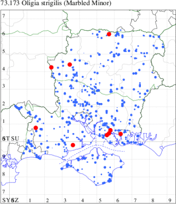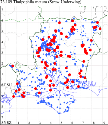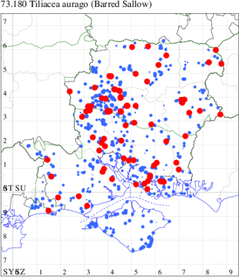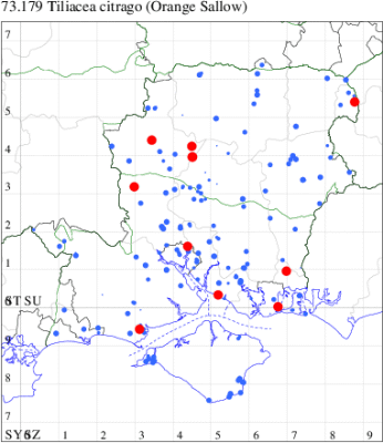VC11: Earliest: Allbrook, 17 Apr, 1 (SIng) Latest: Botley, 26 Oct, 1 (SLB) Max count: North Baddesley, 17 Aug, 96 (RWPas)