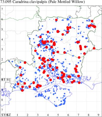 A common migrant from mainland Europe, appearing most frequently in southern coastal counties, less often inland and northwards to southern Scotland and the Inner Hebrides; recorded throughout Hampshire and the Isle of Wight. Wingspan 26-32 mm. The main confusion species are Pale Mottled Willow Paradrina clavipalpis and the rare migrant Dark Mottled Willow S. cilium, but combination of resting position, in which forewings are wrapped tightly around the body, and brownish centres to reniform and orbicular stigmata usually diagnostic. Larva feeds on Dandelion, Groundsel, Broad-leaved Dock, Curled Dock and Common Restharrow.