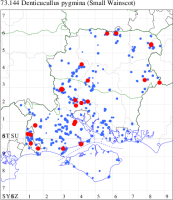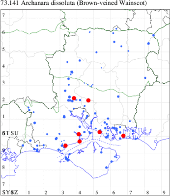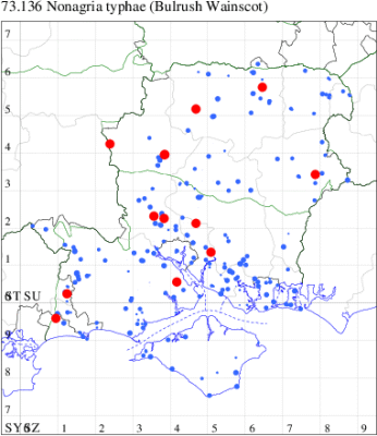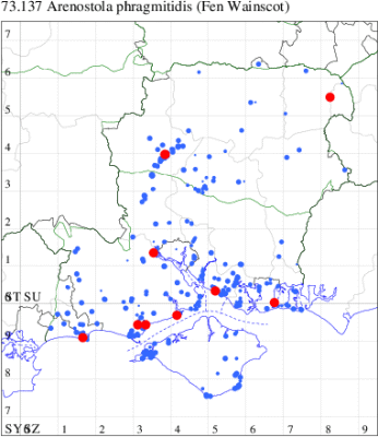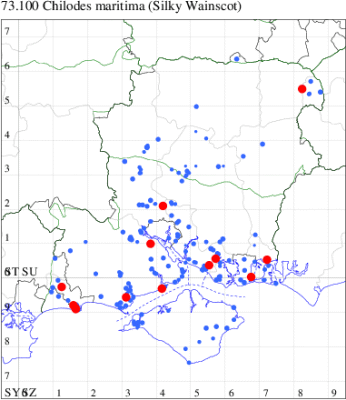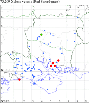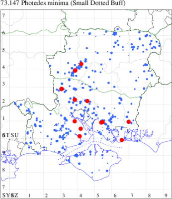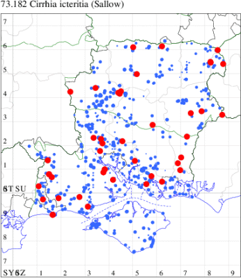 VC11: Marchwood, one, 11 Sep (CTha); Chandler's Ford, one, 15 Jun (KArb); Stubbington, one, 24 Jun (DPH); Fareham, one, 26 Jun (IMcP); Portsmouth, one, 27 Jun; one, 16 Aug; three, 06 Sep; one, 07 Sep (IRT); Langstone, one, 24 Aug (RPic); Hurn, one, 18 Jun; Hengistbury Head, three, 12 Jun; five, 01 Sep; three, 12 Jun; one, 14 Jun; one, 19 Jun (MJef); Pennington, one, 01 Jul; one, 23 Aug; one, 24 Aug (RFC); Needs Ore NNR, six, 10 Jun; one, 01 Jul (CNB);