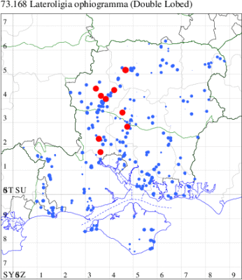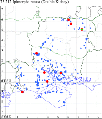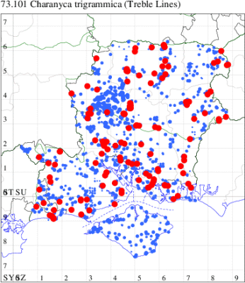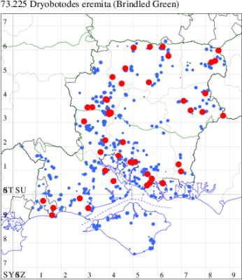 VC11: Pig Bush, NF, one, 01 Jun (NRJ); Culverley, NF, three, 30 May (CLew); Marchwood, one, 22 Jun; Lee, one, 01 Jul (CTha); Dibden Purlieu, NF, one, 12 Jun; one, 13 Jun; one, 17 Jun; one, 08 Jul (RAC); Botley Wood, one, 09 Jun; Wickham, one, 23 Jun (F.M.G.); one, 12 Jun; one, 13 Jun (JRDS); Sway, one, 20 Jun (SKee); Sway, NF, present, 23 Jun (DMui); Battramsley, NF, two, 11 Jun (MWelf); Lymington, one, 22 Jun (PRD);
