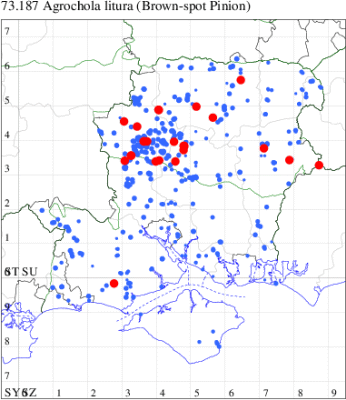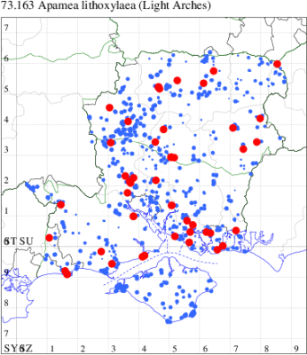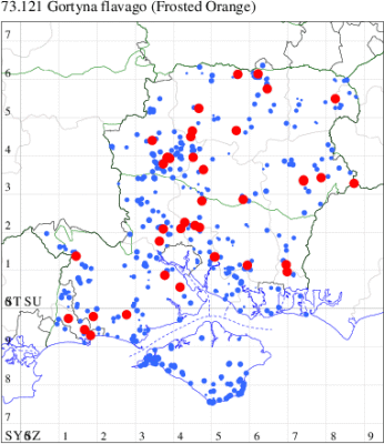 For species seen in 2023 that had less than or equal to 100 records, full details are included; for more common species, the earliest, latest and highest count by vice-county are shown. The narrative for each species is taken from the main Hantsmoths website, and it is possible that some information on abundance and occurrence can get out of date, as it is impossible to keep up with all changes; however it should give a good introduction to each species. The tables in each species account summarise the previous status, and that for the current year.