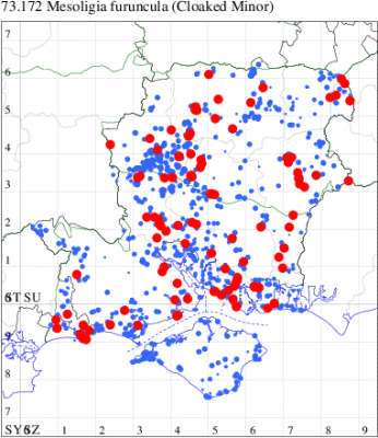 Please note that worn specimens of either species should be aggregated, if not determined by genitalia examination. It is also recommended that inexperienced recorders aggregate the two species, unless the specimen or photo is confirmed by their County Moth Recorder or an experienced local recorder.