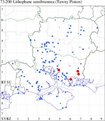 VC11: Brockwood, one, 23 Sep (SDut); Blashford Lakes HIWWT NR, one, 23 Sep; one, 30 Sep (PWhtk); Hale Purlieu, NF, one, 18 Sep (JPuz); East Tytherley, two, 26 Sep; Broughton, three, 26 Sep (GCE); Marchwood, two, 04 Oct; one, 08 Oct (TDCh); one, 27 Sep; two, 04 Oct; one, 08 Oct (CTha); North Baddesley, one, 30 Sep (RWPas); Stanbridge Earls, one, 16 Sep; one, 24 Sep; three, 25 Sep (JRM); Romsey, one, 01 Oct; one, 07 Oct (MJB); one, 19 Sep; three, 10 Oct; two, 17 Oct (NRJ); Broughton, four, 30 Sep; three, 30 Sep; two, 30 Sep; two, 30 Sep; four, 05 Oct (GCE); Dibden Purlieu, NF, one, 30 Sep; one, 02 Oct; one, 04 Oct; one, 05 Oct (RAC); Blackfield, one, 30 Sep (SJJ); Chandler's Ford, one, 25 Sep (KArb); Lee-on-Solent, one, 22 Sep; one, 23 Sep (IHrg det. MJW); Fareham, one, 04 Oct (ADT); one, 30 Sep (MLO); one, 02 Oct; one, 11 Oct (KJW); Botley, one, 22 Sep; two, 24 Sep; one, 06 Oct; one, 08 Oct; one, 10 Oct; one, 19 Oct; one, 22 Sep; one, 28 Sep; one, 01 Oct; one, 05 Oct; one, 06 Oct; one, 17 Oct (SLB); Wickham, one, 10 Oct (JRDS); #REF!#REF!Portsmouth, two, 26 Sep (IRT); Waterlooville, one, 27 Sep; one, 29 Sep; one, 17 Oct (DWhe); Lovedean, one, 04 Oct; one, 05 Oct (ARJa); Langstone, one, 07 Oct (HuWhi); Horndean*, one, 25 Sep; one, 29 Sep (PHog); Hurn, one, 23 Sep; two, 24 Sep; one, 01 Oct; two, 02 Oct; two, 05 Oct; two, 10 Oct (MJef); Hengistbury Head, two, 02 Oct (RPH det. MJef); four, 04 Oct; one, 05 Oct; one, 06 Oct (MJef); Sway, one, 01 Oct; three, 09 Oct; two, 10 Oct (SKee); Pennington, two, 25 Sep (RFC);