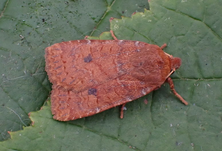 Local in fens, damp woodland, scrubby heathland and moorland throughout the British Isles. In Hampshire this species occurs in birch-heath country, mainly in the New Forest and the north-east. There are two records from the Isle of Wight, one very old. Wingspan 29-34 mm. Easily overlooked amongst the far more numerous rustic and minor species of high summer, but candidates can usually be picked out from these on the basis of size and wing-shape — look for a slightly arched costa, rounded termen, and somewhat pointed apex — rather variable in colour and intensity of markings, but often variable shades of red, with finely white-edged reniform and orbicular stigmata, and dentate black cross-lines often reduced or faint. Larva feeds on Silver and Downy Birch, and Sallow, over-wintering as an egg.