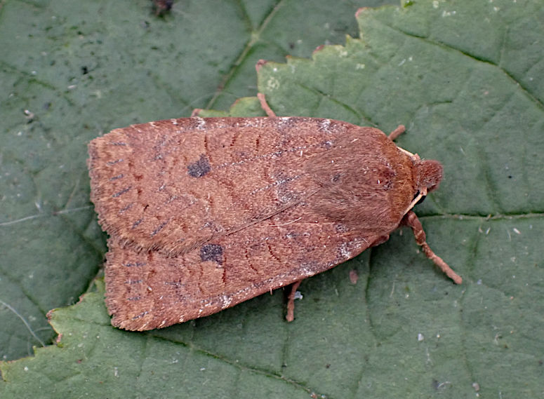 Common in a wide range of low-land habitats, including grassland, farmland, heathland, scrub, woodland and gardens throughout the British Isles, a species of conservation concern under the UK Biodiversity Action Plan. Widespread and common in Hampshire and on the Isle of Wight. Wingspan 28-35 mm. Characterised by orbicular and reniform stigmata appearing blurred, without distinct edges. Larva feeds on Stinging Nettle, Curled Dock, Broad-leaved Dock, Goosefoot and Hedge Bedstraw, over-wintering in a cocoon.