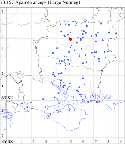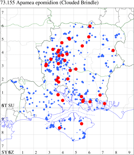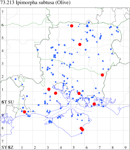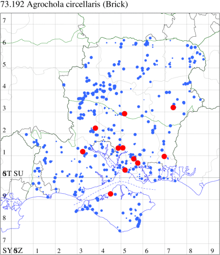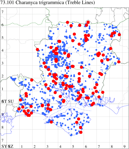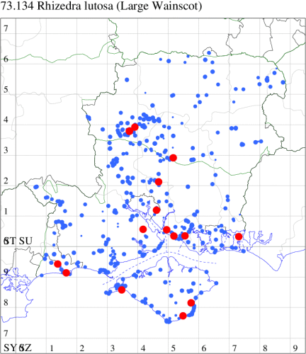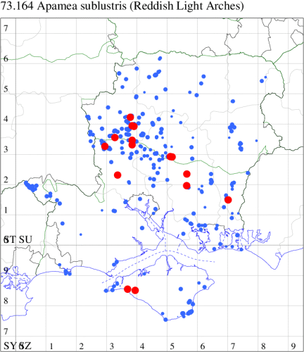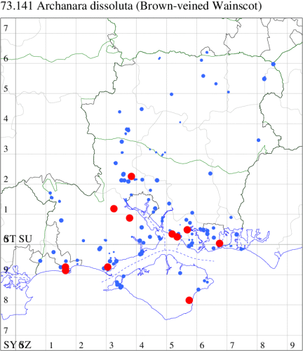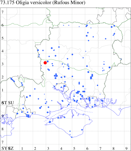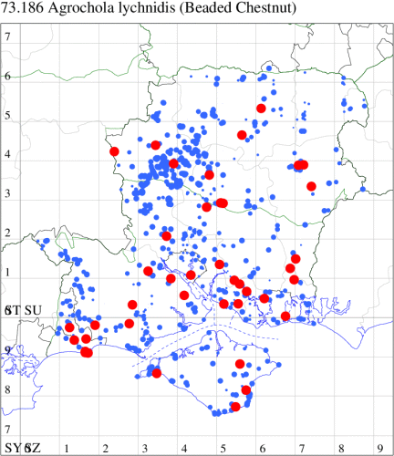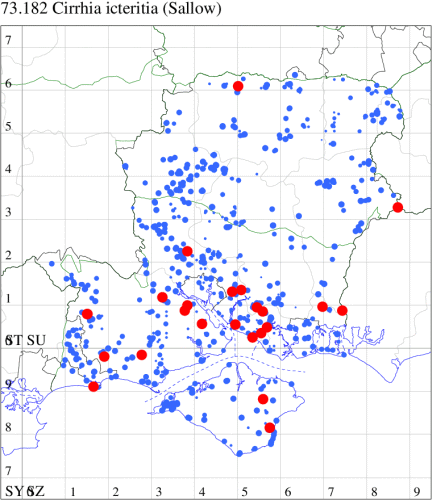 VC11: Marchwood, one, 19 Sep; one, 01 Sep; two, 06 Sep; one, 08 Sep (CTha); Woodlands, NF, one, 31 Aug (RBW); Lee, two, 06 Sep (CTha); Romsey, three, 01 Sep; five, 02 Sep; present, , 03 Sep (SRC); two, 30 Aug; three, 01 Sep; two, 03 Sep; one, 08 Sep; one, 16 Sep; one, 19 Sep (MJB); one, 01 Sep (NRJ); Stockbridge Down NT, one, 28 Aug (GCE); Dibden Purlieu, one, 28 Aug; Dibden Purlieu, NF, one, 01 Sep; one, 02 Sep; one, 07 Sep (RAC); Southampton, one, 19 Sep (MGP); West End, one, 01 Sep (AMD); Allbrook, two, 01 Sep; two, 02 Sep; one, 08 Sep; two, 20 Sep (SIng); Brownwich Cliffs, Titchfield, four, 06 Sep (F.M.G.); Funtley, four, 01 Sep (TDC); Fareham, one, 02 Sep; one, 08 Sep; one, 15 Sep (MLO); Botley, one, 01 Sep; one, 03 Sep; one, 13 Sep (SLB); Waterlooville, one, 08 Sep; seven, 06 Oct (DWhe); Northney, Hayling Island, present, 02 Sep; present, 13 Sep (JWP); Hurn, two, 11 Sep (MJef); Sway, one, 26 Aug; three, 01 Sep; one, 03 Sep; one, 08 Sep; two, 09 Sep (SKee); Sway, NF, present, 01 Sep (DMui); Pennington, one, 31 Aug; one, 06 Sep; two, 07 Sep; one, 20 Sep; one, 22 Sep (RFC);