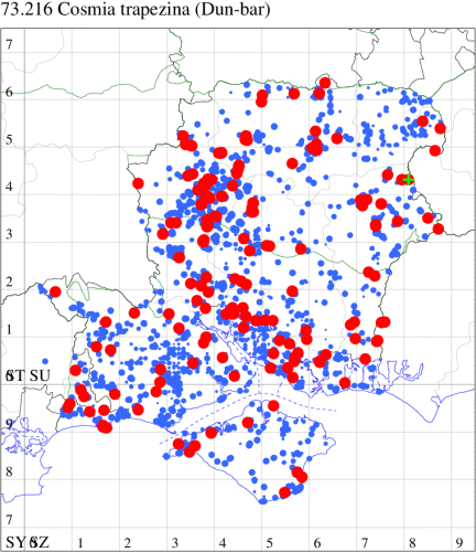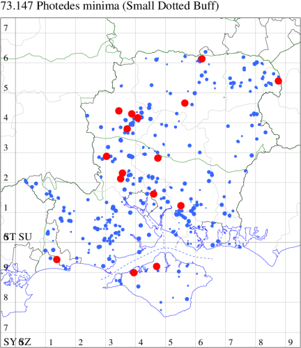VC11: Stubbington, one, 30 Jun (WMay); Lee-on-Solent, one, 29 Jun (IHrg); Fareham, one, 27 Jun; one, 29 Jun; one, 01 Jul (ADT); one, 25 Jun (IMcP); Botley, one, 25 Jun (SLB); Christchurch: Cross Way, one, 20 Jul (LPyk); Hengistbury Head NNR, one, 27 Jun (MoTay det. MJef); two, 04 Jul (BKin det. MJef); one, 10 Jul (HengistH det. MJef); two, 11 Jul; one, 14 Jul (BKin det. MJef); one, 16 Jul (HengistH det. MJef);