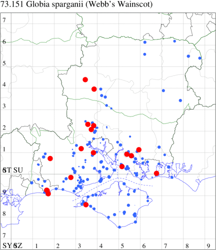 VC10: Ningwood Common, present, 25 Jun; present, 02 Jul; present, 07 Jun; present, 17 Jun; present, 20 Jun; present, 25 Jun; present, 02 Jul; present, 17 Jun; present, 25 Jun; present, 02 Jul (HMak); Speedwell, Cranmore, NF, present, several, 18 Jun (AMD); Newtown, four, 26 Jun; Walter's Copse, Newtown, one, 26 Jun (PBard); Osborne Wood, one, 01 Jul (IOu);