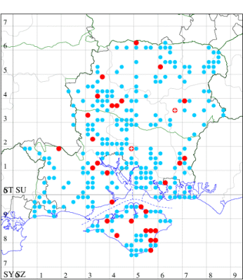 For the maps, all records prior to 2022 are shown by a blue dot (the larger the dot, the more recent), with the current year's records shown in red. As previous records are superimposed on any report for 2022, new sites have greater emphasis (i.e. will show as 'more red').