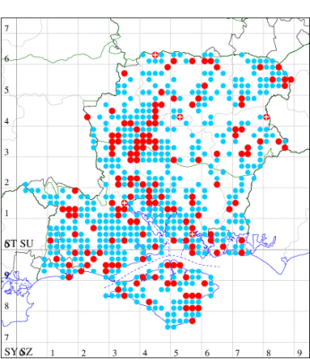 For the maps, all records prior to 2022 are shown by a blue dot (the larger the dot, the more recent), with the current year's records shown in red. As previous records are superimposed on any report for 2022, new sites have greater emphasis (i.e. will show as 'more red').