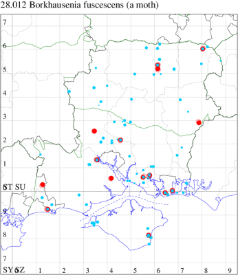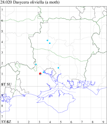 VC11: Brockwood, one, 07 Aug (SDut); Dibden Purlieu, two, to actinic, 09 Aug (RAC); Old Winchester Hill*, one, field observation, 01 Aug (JHH, AMD det. JHH); Tuckton, Bournemouth, one, 04 Aug (APar); Sway, one, 26 May; one, 24 Jun; one, 04 Jul (SKe); Pennington, one, 24 Jun; one, 13 Aug (RFC); Pilley Bailey, NF, one, 03 Aug (RBW, MWa);