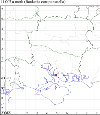 Endangered (proposed as a future Red Data Book species) in Hampshire and Kent, where it was rediscovered in 1984, and Yorkshire; recently also found in an urban context in Mynachdy, Cardiff. Not recorded from the Isle of Wight to date. There has been some discussion amongst authors as to the identity of the species found in Britain; formerly it was believed to be Dahlica (Bankesia) douglasii, but presently it is assigned to B. conspurcatella. The adult moths are seen occasionally, but most records are of larval cases. Larva feeds on lichens growing on tree trunks, fence posts and rocks, living within a movable case, over-wintering as a pupa.