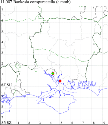 Endangered (proposed as a future Red Data Book species) in Hampshire and Kent, where it was rediscovered in 1984, and Yorkshire; recently also found in an urban context in Mynachdy, Cardiff. Not recorded from the Isle of Wight to date. There has been some discussion amongst authors as to the identity of the species found in Britain; formerly it was believed to be Dahlica (Bankesia) douglasii, but presently it is assigned to B. conspurcatella. The adult moths are seen occasionally, but most records are of larval cases. Larva feeds on lichens growing on tree trunks, fence posts and rocks, living within a movable case, over-wintering as a pupa.